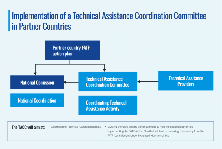 The EU Global Facility has developed an innovative supporting tool, the Technical Assistance Coordination Committees (TACC), to help partner countries achieve those goals. The TACC assists them in establishing a body and associated mechanisms to coordinate and structure all technical assistance activities. The TACC also seeks to strengthen compliance with the FATF’s International Cooperation Review Group (ICRG) requirements, based on the experience acquired by other countries during the ICRG process. The outcome of the strategic approach programme has an impact across all components of the EU Global Facility.